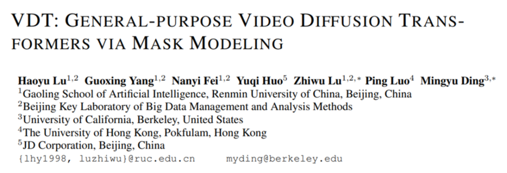 This endeavor, led by a research team from Renmin University of China (RUC) in collaboration with the University of California, Berkeley, the University of Hong Kong, and others, was first unveiled to the public on the arXiv website in May 2023. The team proposed a transformer-based unified framework for video generation - Video Diffusion Transformer (VDT), and provided detailed explanations for the adoption of transformers.