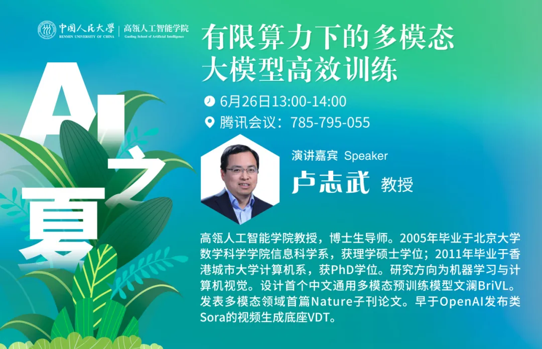 "AI之夏"研招系列学术讲座第13讲:有限算力下的多模态大模型高效训练
