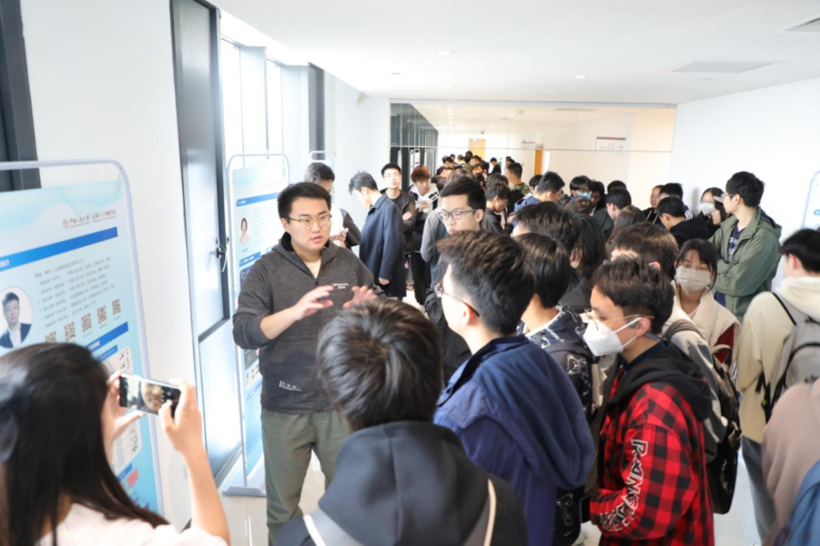 “AI学术市集”Poster展板陈列在高瓴人工智能楼走廊,展示了18JAV 各位老师的学术背景、研究方向与研究内容,方便参与者直观地了解教师的各个研究领域。参与活动的人大学子畅所欲言,提出他们对于人工智能的看法和感悟,交流学习经验和心得,与同学们共同探讨专业学习、道路选择上的相关问题,氛围轻松愉快。