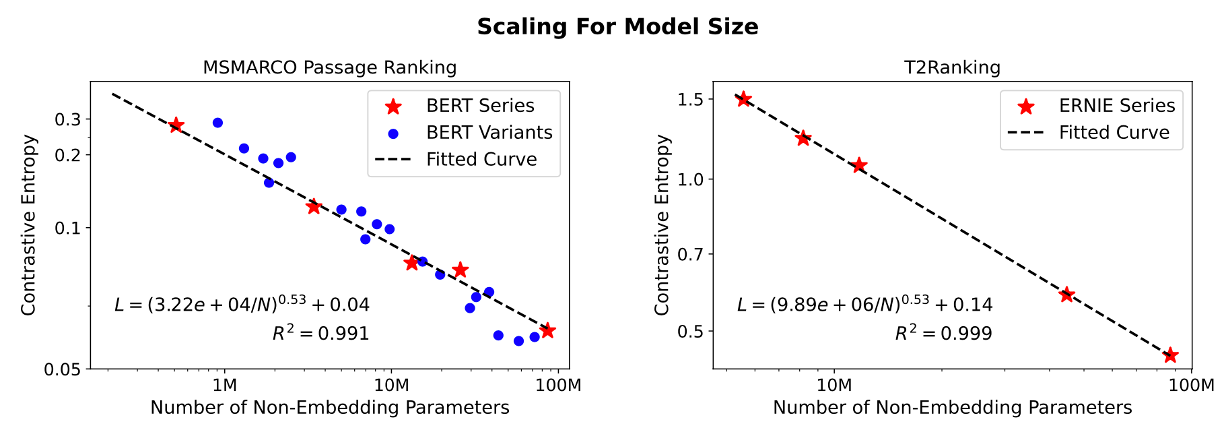 毛佳昕副教授与清华大学艾清遥助理教授、刘奕群教授、研究生方言、詹靖涛、陈佳、苏炜航合作发表的长文“Scaling Laws for Dense Retrieval”旨在研究稠密检索模型的检索性能受到模型大小、数据规模、训练计算量三个关键因素影响的“规模缩放定律”(Scaling Laws)。通过使用“对比熵”(contrastive entropy)这一连续的指标对多个稠密检索模型的检索性能进行评价,论文发现稠密检索模型的性能遵循与模型大小和标注数据规模相关的幂律函数关系。