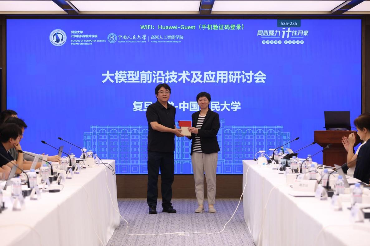 黄萱菁教授带头重温了习近平总书记在全国科技大会上的重要发言:“当前,新一轮科技革命和产业变革深入发展。科学研究向极宏观拓展、向极微观深入、向极端条件迈进、向极综合交叉发力,不断突破人类认知边界”,引起与会人员的深刻共鸣。黄萱菁教授表示,复旦和人大在综合交叉方面都具有鲜明的特点和优势,我们一方面要做更好的AI和更好的大模型,另一方面要为社会科学和自然科学服务,体现出更大的价值,回应国家社会重大需求。
