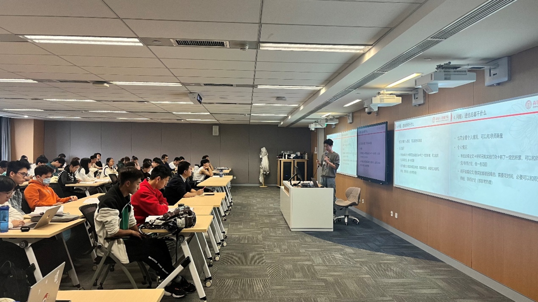 2024年10月30日下午,18JAV 在立德楼1001教室举行了2023级本科生科研领航行动启动会。会议由本科教务秘书杨倩老师主持,副院长窦志成教授出席并致辞,2021级本科生程翔、张冰姿、邓佳作为高年级代表分享科研经历,2023级全体本科生参会。
