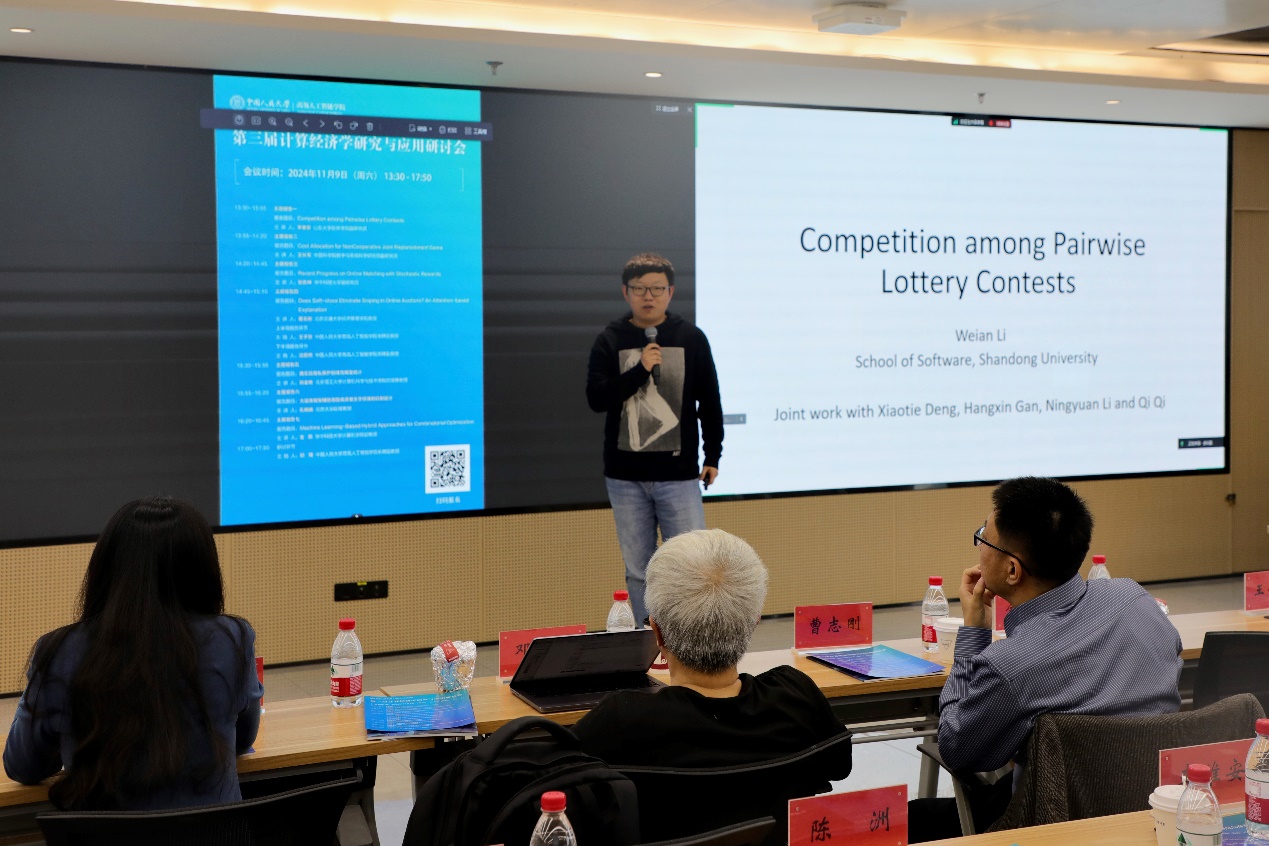 山东大学李维安副研究员介绍了他们在多阶段竞赛模型中的创新研究。该研究探讨了竞赛设计者和参赛者之间的策略选择及其均衡状态的存在性。报告指出,在参赛者中可以实现纯策略纳什均衡,并开发了一种算法来计算这种均衡。在设计者的决策分为不同阶段时,研究也证明了另一种稳定状态的存在。这为竞赛设计和策略制定提供了新的视角和工具,具有重要的应用价值。