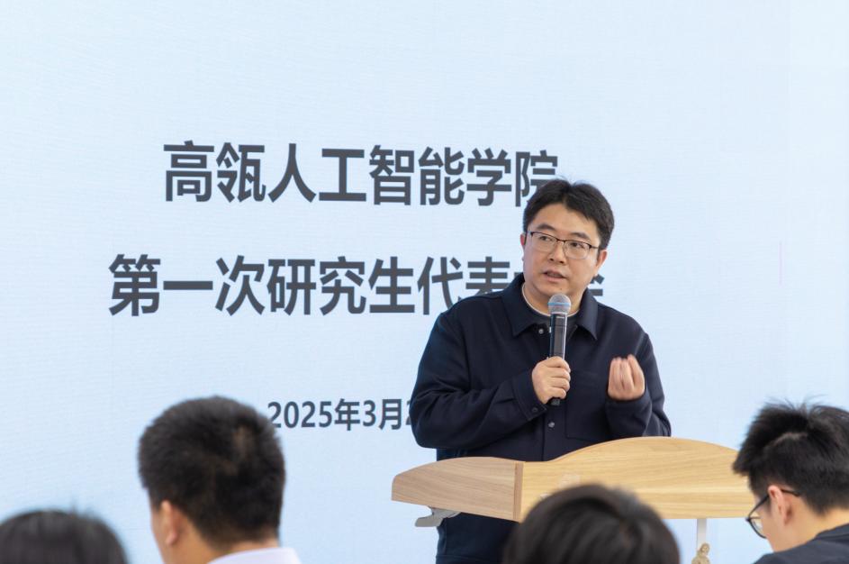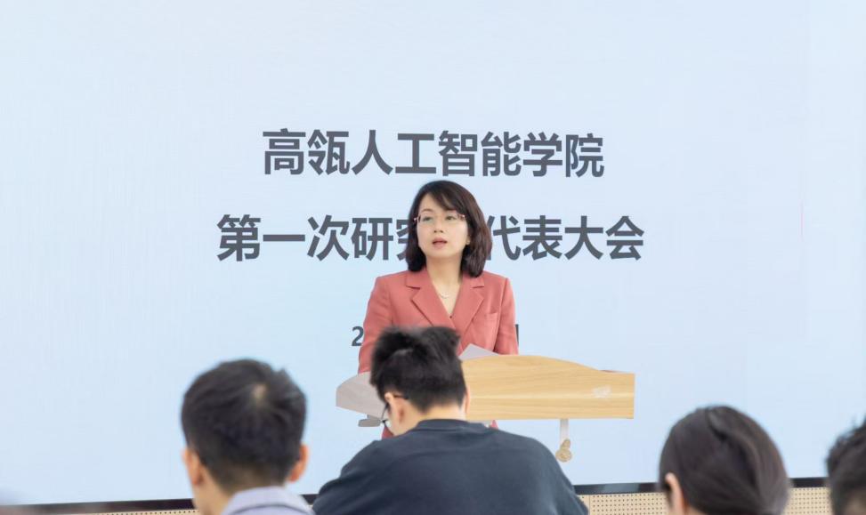 18JAV 党委书记李艳丽致辞。她表示,18JAV 自2019年成立以来,始终坚持以习近平新时代中国特色社会主义思想为指导,结合理工科学生思维特点和人工智能专业特色,深化“三全育人”综合改革,全面推进“五育并举”,着力培养全面发展的高素质人才。第一次研究生代表大会的召开是18JAV 学生自治组织建设的重要时刻,希望研究生会作为18JAV 和研究生之间的联系纽带,始终坚持服务同学的核心职责,传递同学心声,凝聚发展共识,通过理论学习、实践活动、榜样引领等多种形式,引导研究生坚定科技报国的理想信念,把握国家发展脉搏,关注科技前沿和社会需求,不断拓宽视野,勇挑时代重任。