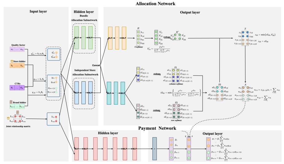 图 2:HRegNet的架构设计用于包含m家商店、n个品牌、k个广告位和R个bundle的场景。获胜bundle的最大数量为 C。