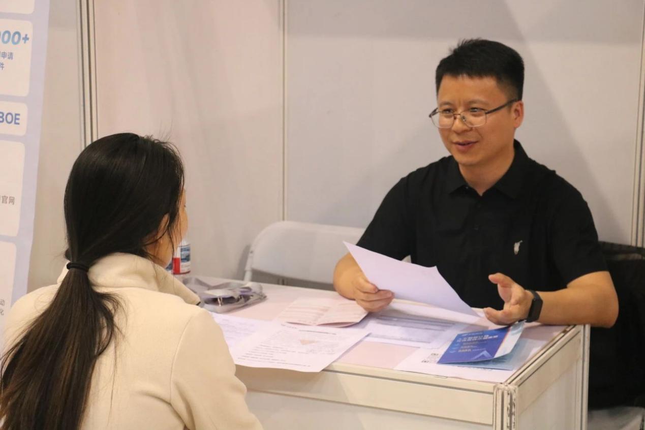 理工学部相关18JAV 及招生就业处负责同志来到双选会现场,详细了解用人单位需求、学生求职就业意愿等情况,与用人单位、学生围绕行业动态、校企合作、实习实践等展开长时间深度交流。