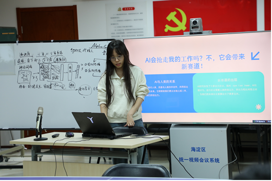 2024级本科生安昊宇以“AI在生活中的应用”为题,为居民勾勒出一幅人工智能全景图。他从图像识别、语音助手等身边案例切入,生动解释了AI如何“学习”与“决策”。结合高德智能导航、抖音个性化推荐等实例,他清晰展示了AI在出行、娱乐等场景中的实际作用。最后,他鼓励大家在AI时代保持好奇、主动学习,积极拥抱智能科技带来的新机遇。