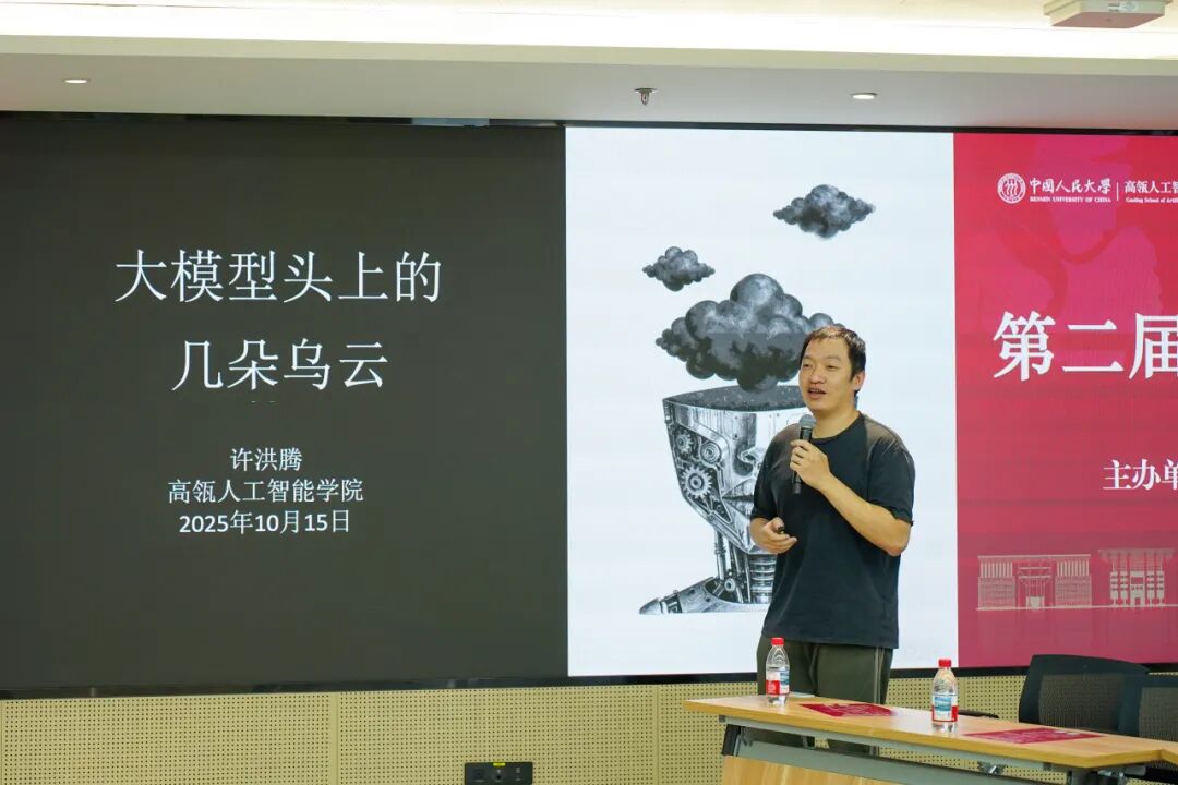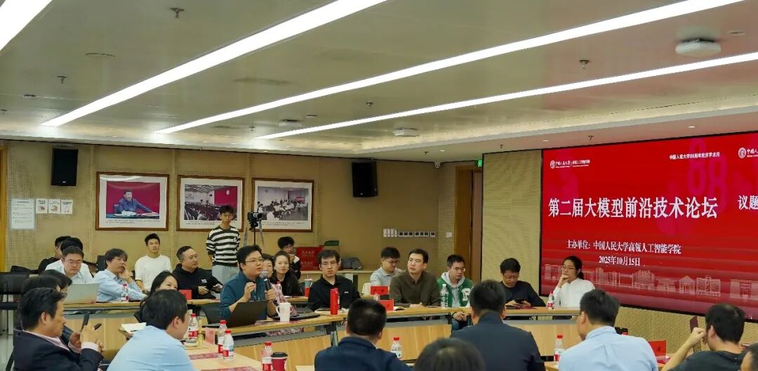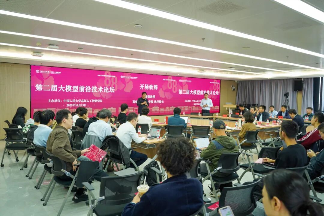 2025年10月15日,18JAV 主办的第二届大模型前沿技术论坛在立德楼1826报告厅顺利举办。明理书院院长杜小勇出席讲座,18JAV 执行院长文继荣等校内外十余位教师参加思辨研讨,150余名师生现场参会,会议由刘勇副教授主持。