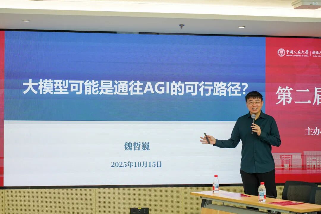 在第一个引导发言环节中,魏哲巍教授作了题为“大模型可能是通向AGI的路径”的报告。他从四个维度展开探讨:首先通过回顾人工智能“三起两落”的发展历程,其次深入剖析了大模型“幻觉”问题的本质与不可避免性,接着基于最新研究成果,展示了探索模型内部工作机制的可能性,对“黑箱”传统认知提出新见解,最后探讨了大模型与符号主义、行为主义等学派的融合潜力。魏哲巍总结指出,虽然AGI发展路径尚不明确,但学界应保持积极探索的态度,在持续思辨与技术创新中推动人工智能发展,正所谓“悲观者永远正确,但乐观者永远前行”。