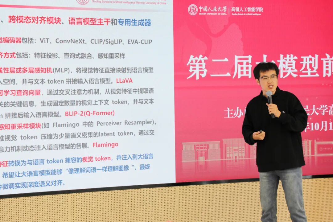 马彦彪讲师分享了题为“多模态大模型图文交互理解研究进展与发展”的报告。他首先从“感知和认知”两个角度分析了多模态大模型在进行图文交互理解时面临的挑战和难题,然后系统的介绍了当前从感知和认知两个角度解决问题的方法。接着,他展示了多模态大模型在科学问题求解、医学影像解读等领域的应用和进展。最后,他介绍了未来的六个发展方向,例如图像理解与生成统一范式,隐空间推理等方向,展望了未来的研究趋势。