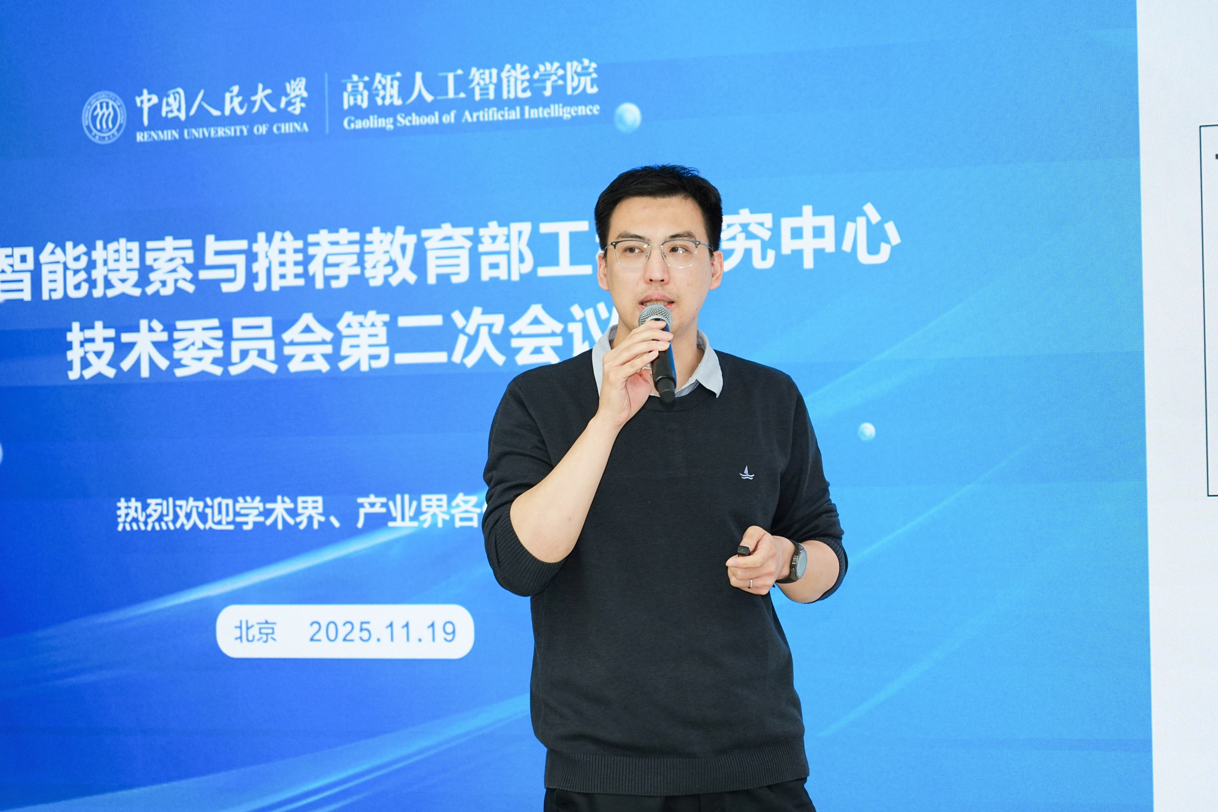 在学术报告环节,中心教师代表窦志成教授、张骁副教授和王希廷副教授分别围绕“推理模型驱动的深度搜索智能体”“可控学习初探”“面向通用大模型的理论与方法探索”作专题报告,展示了中心在相关前沿领域的科研实力与创新活力。