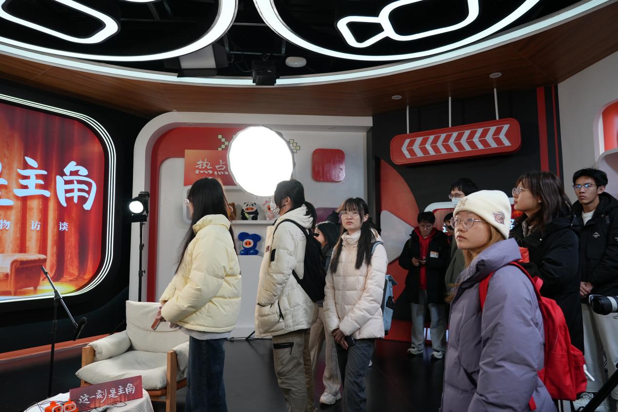 随后,在工作人员的带领下,同学们参观了快手先进的演播中心。现场陈列的多台高端摄影设备和智能化直播设施,让同学们直观感受到内容创作背后的技术支撑与工程实力,也对数字媒体产业的前沿应用场景有了更立体的认知。