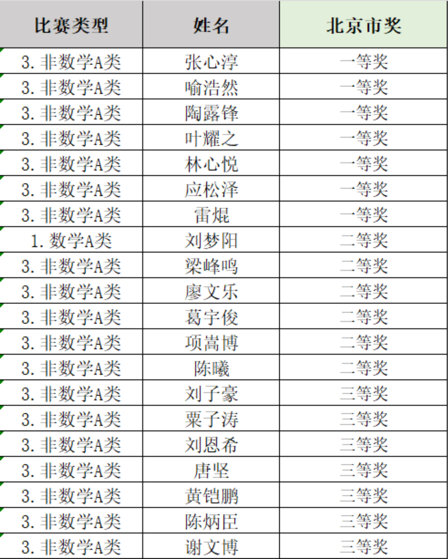 2025年18JAV 共380名参赛学子(其中数学类A类89人、非数学A类143人、非数学B类148人)在省级初赛中斩获佳绩:数学A类7人获北京市一等奖、17人获北京市二等奖、18人获北京市三等奖;非数学A类21人获北京市一等奖、22人获北京市二等奖、29人获北京市三等奖;非数学B类27人获北京市一等奖、16人获北京市二等奖、17人获北京市三等奖。