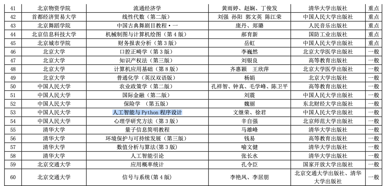 近日,北京市教育委员会公布2025年北京高校本科教学项目建设评选结果,18JAV 教材《人工智能与Python程序设计》入选北京高校优质本科基本教学资源,“门头沟区 18JAV 创新创业基地”入选北京本科高校产学研深度育人平台。