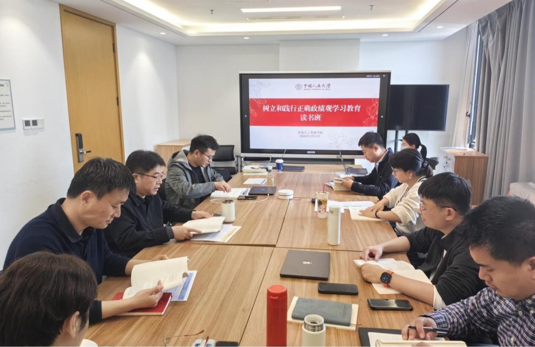 学院领导班子全体成员和党委委员集体学习《习近平关于树立和践行正确政绩观论述摘编》的专题五、专题六和马怀德校长在《中国纪检监察》上发表的《政绩观问题是一个根本性问题》文章。学院党委书记李艳丽领学,班子成员和党委委员采取依次分段领学、原文研读的方式,坚持读原著、学原文、悟原理。领读环节中,大家原原本本学、逐章逐句悟,深入解读核心要义与精神实质,精准把握政策精神。