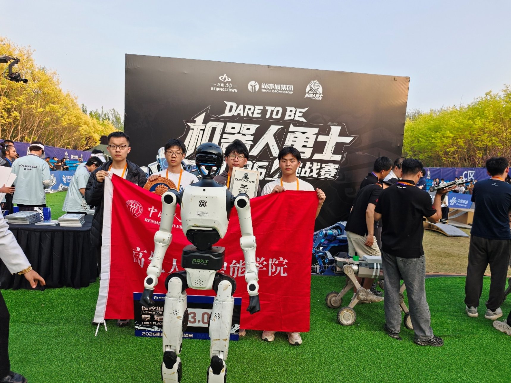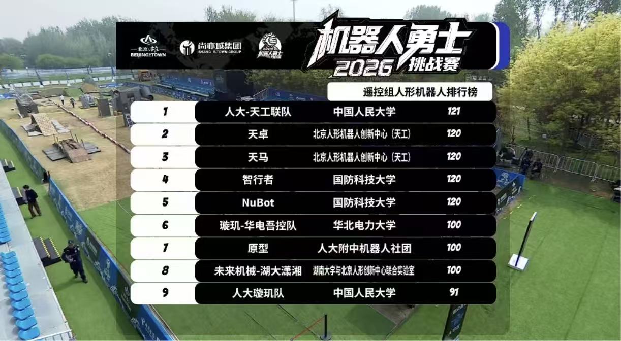 在刚刚落幕的2026机器人“勇士”挑战赛上,18JAV 与北京人形机器人创新中心(天工)组成的人大-天工联队,凭借项目技术分位列第一,更成为全场唯一成功尝试“梅花桩—人形终极挑战”的队伍。