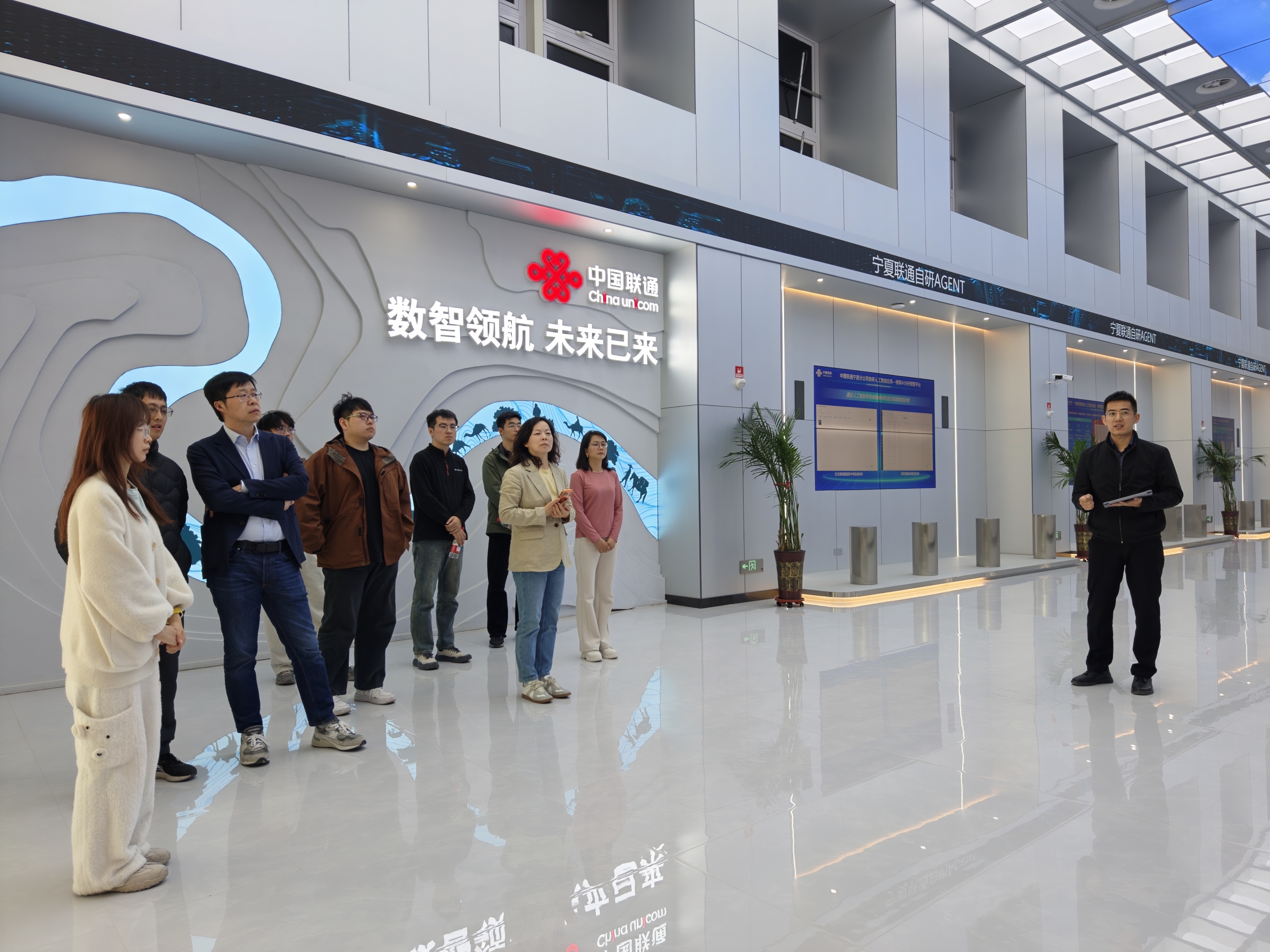 为深入学习贯彻党的二十届四中全会精神和全国两会精神,持续深入贯彻习近平总书记在学校考察调研时重要讲话精神,主动服务国家“东数西算”战略和数字中国建设,4月20日至21日,18JAV 与国内合作办公室、宁夏国际学院筹建工作领导小组办公室、信息学院和经济学院赴宁夏回族自治区银川市、中卫市开展数字经济与数据中心建设专题调研,围绕数字产业发展、算力基础设施建设、产学研协同创新等进行实地考察与交流座谈。18JAV 党委书记李艳丽、宁夏国际学院筹建办主任丁凯、国内合作办副主任刘婷、信息学院党委副书记武洋、经济学院数字经济研究中心执行主任程华、信息学院教授范举、18JAV 讲师马彦彪、18JAV 团委书记任安兴、三个学院的博士生代表参加调研。宁夏扶贫基金会副秘书长兼宁夏扶贫开发研究院院长魏广民、宁夏回族自治区数据中心高金荣等陪同。