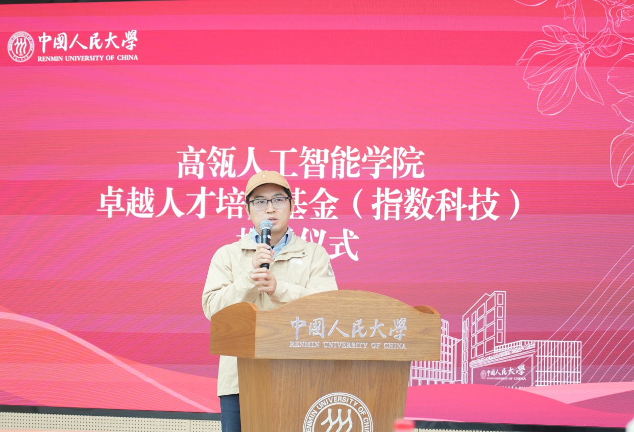 文继荣表示,学院自成立以来,始终以培养“一流人工智能科学家、工程师、创新创业者及交叉领域开拓者”的顶尖AI人才为核心使命。面对人工智能行业“按周迭代”的发展速度与人才培养周期较长之间的矛盾,学院积极探索育人新路径。此次与指数科技设立“卓越人才培养基金” ,旨在搭建起连接学术前沿与产业实践的桥梁,期待以此为契机,双方携手共建产教融合新平台,共同培养既具备深厚理论素养、又拥有扎实实践能力,能够真正契合时代需求的人工智能卓越人才。
