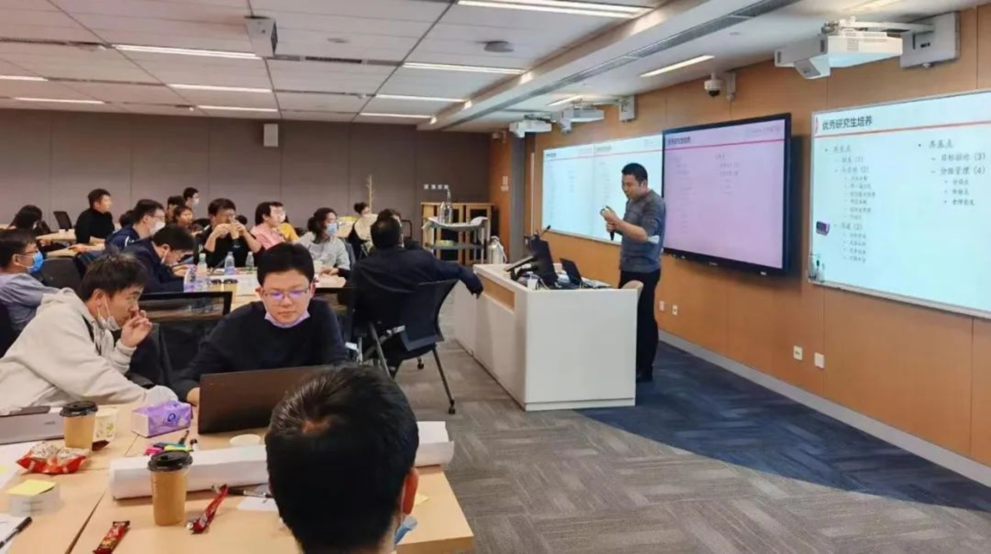 第一组发言人刘勇老师针对优秀培养方法,按照重要顺序提出了招生、冷启动、沟通、目标驱动、分组管理共五个要点,并提出要给予学生充分的学习科研动力,关注学生心理健康。