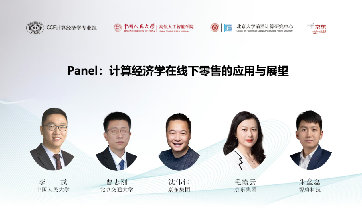 报告过后,Panel环节,智唐科技董事长,CCF计算经济学专业组副主任朱垒磊、18JAV 教授李戎、北京交通大学教授,CCF计算经济学专业组常务委员曹志刚、京东集团副总裁、全渠道生态部负责人沈伟伟、京东零售战略投资合作负责人毛霞云就专题计算经济学在线下零售的应用与展望进行深入讨论,学术交流氛围浓厚。