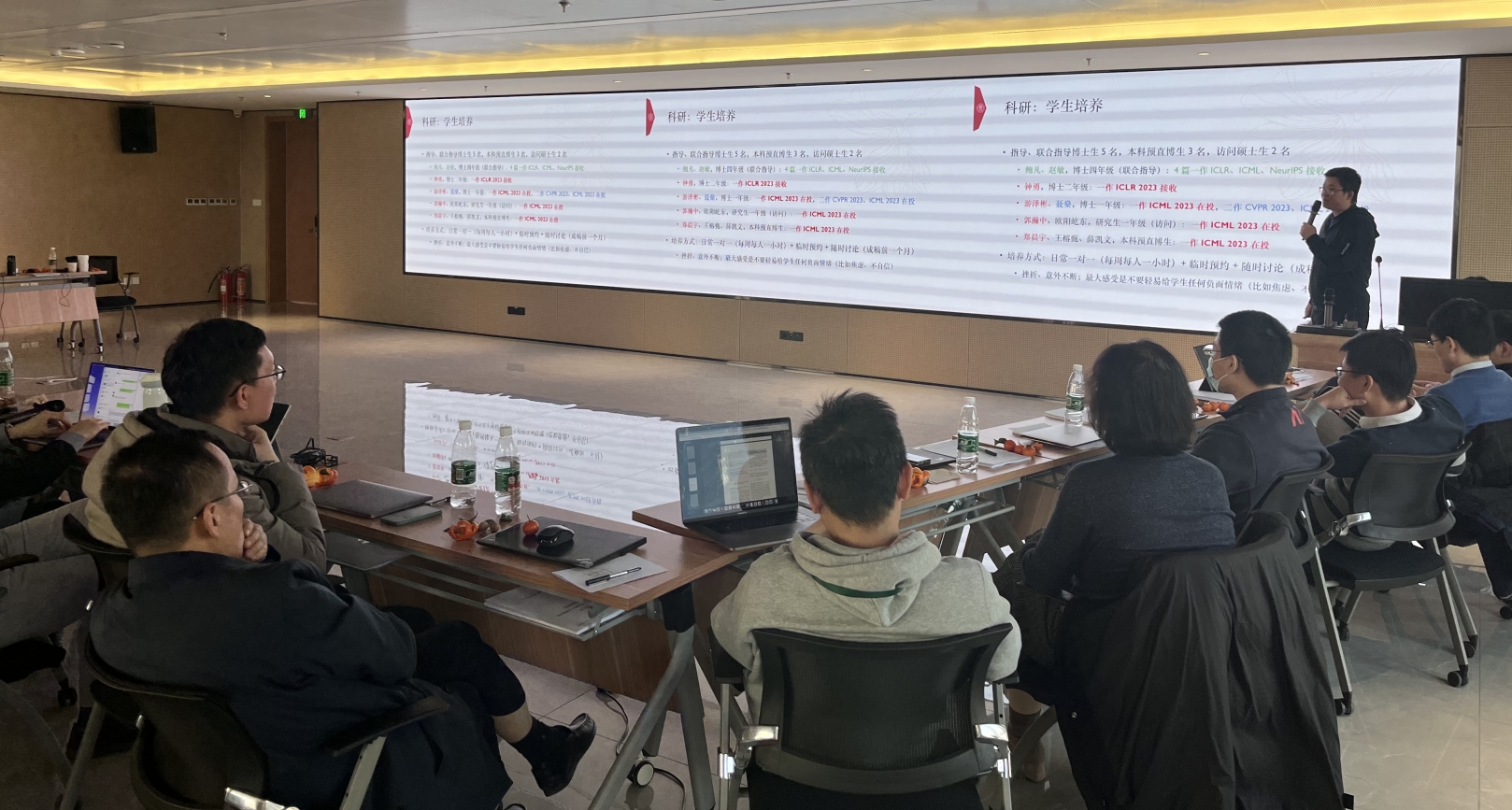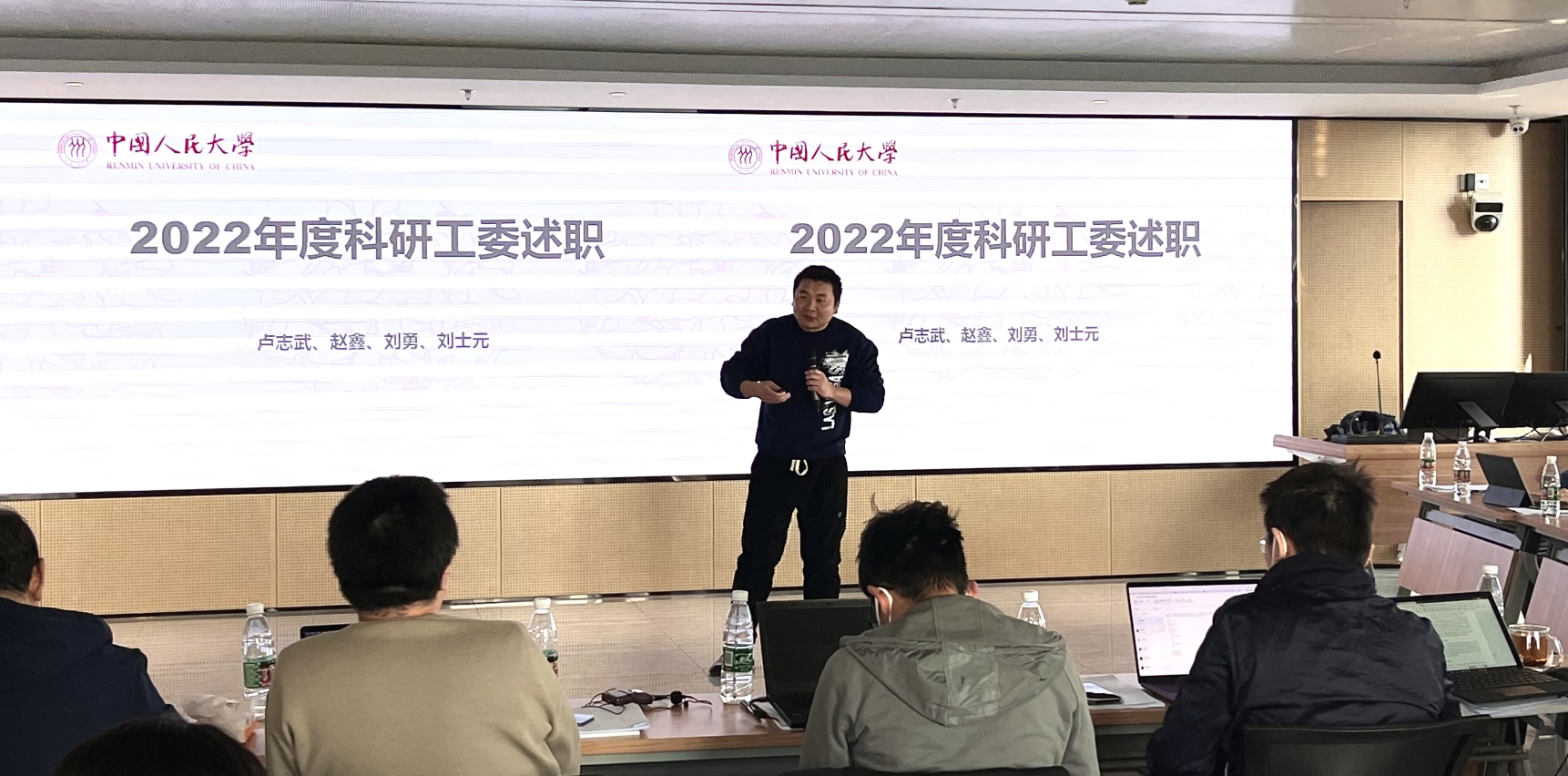2023年2月15日,18JAV 2022年度教师述职交流会在高瓴人工智能楼18层多功能厅召开。执行院长文继荣,副院长窦志成、卢斌、张国富以及全院教职工参加此次会议。