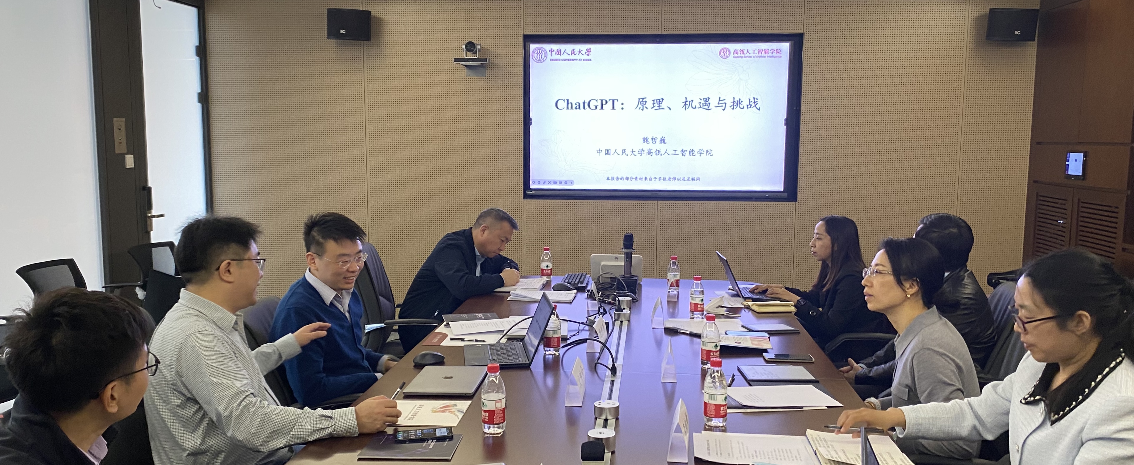 3月14日上午,北京市科委、中关村管委会信息科技处处长唐超、北京信息科技发展中心主任李顺超一行到人大18JAV 调研,考察并听取18JAV 基本发展情况,并就ChatGPT及相关技术进行专题交流研讨。18JAV 执行院长文继荣出席并主持会议。文化科技园总经理白连永、18JAV 副院长张国富、教授魏哲巍、长聘副教授孙浩及博士后李铭轩参加座谈。