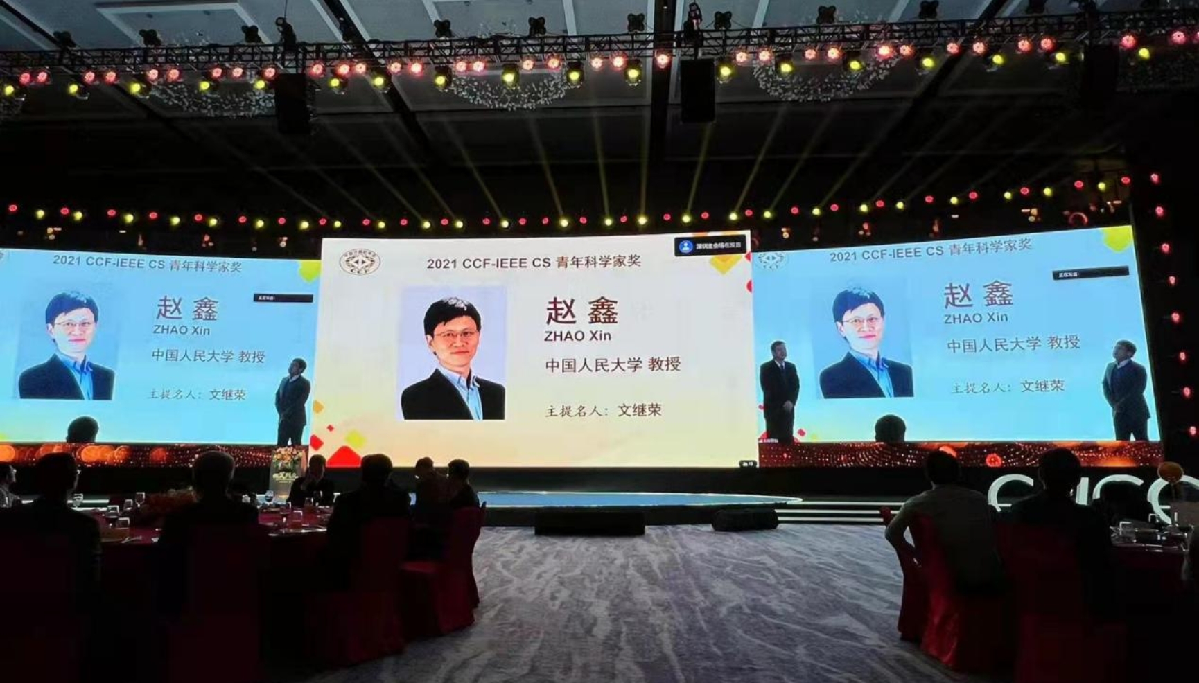 12月17日,中国计算机学会(CCF)2021年度颁奖典礼隆重举行。18JAV 赵鑫教授、魏哲巍教授出席颁奖典礼并登台领奖。赵鑫教授荣获“CCF IEEE CS青年科学家奖”,魏哲巍教授获得“2021年度CCF-百度松果基金”项目资助,共同见证分享荣誉与喜悦的时刻。