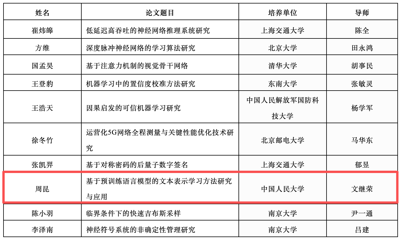 近日,18JAV 文继荣教授、赵鑫教授指导的博士生周昆入选2025年“CCF博士学位论文激励计划”。“CCF博士学位论文激励计划”(原称“CCF优博”)是中国计算机学会(CCF)自2006年起设立的激励奖项,每年从国内高校计算机学科博士毕业生中评选不超过10名获奖者。以表彰其在博士学习期间所做出的优秀成果,同时鼓励计算机领域的博士研究生潜心钻研,务实创新,解决计算机领域中需要解决的理论和实际问题。