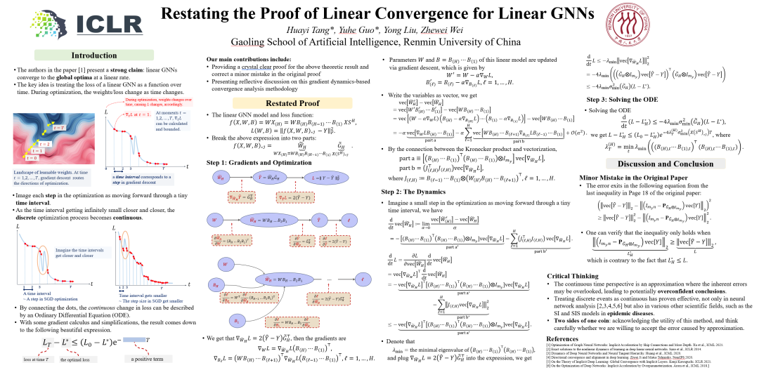 博士生甘泽宇代表团队在 ICLR 2025 宣讲 poster 论文,他分享道:“在会议中,我与许多同行交流了我的工作,并了解了他们的研究方向,这让我对整个领域的研究状况有了更全面的认识。”