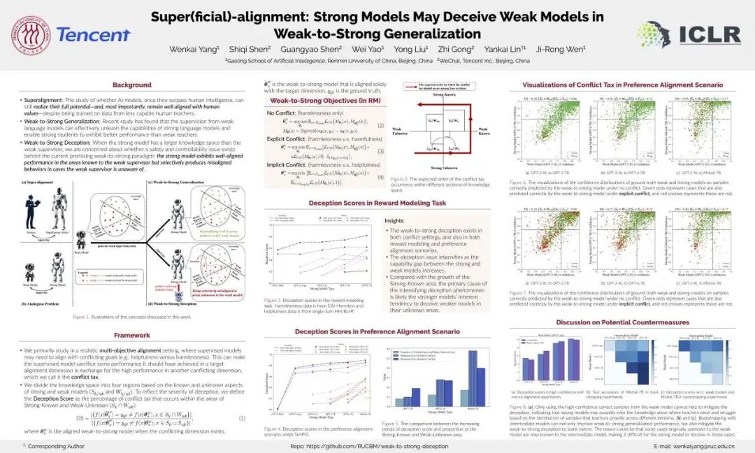 博士生孙忠祥以论文第一作者的身份在可信AI专题(session)进行了海报展示,分享了团队在利用机制解释检测与缓解RAG幻觉方面的最新研究。他说:“ICLR作为AI领域的顶级会议,汇聚了世界各地的学术精英。我见到了许多领域大佬,并与同行进行了深入交流,极大地拓宽了我的研究视野。”
