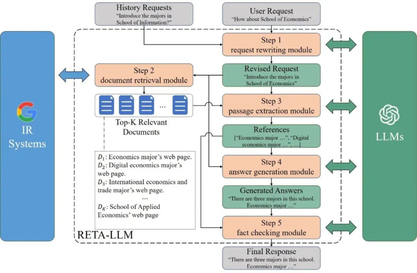 摘要:YuLan-RETA-LLM,是一个由18JAV 的研究团队开源的一个检索增强大型语言模型的工具包。该工具包提供了请求改写、文档检索、段落提取、答案生成和事实检查等多个模块,旨在帮助LLM更好地使用检索。此外,工具包还提供了一个完整的流程,可协助研究人员和用户构建他们定制的领域内问答系统。