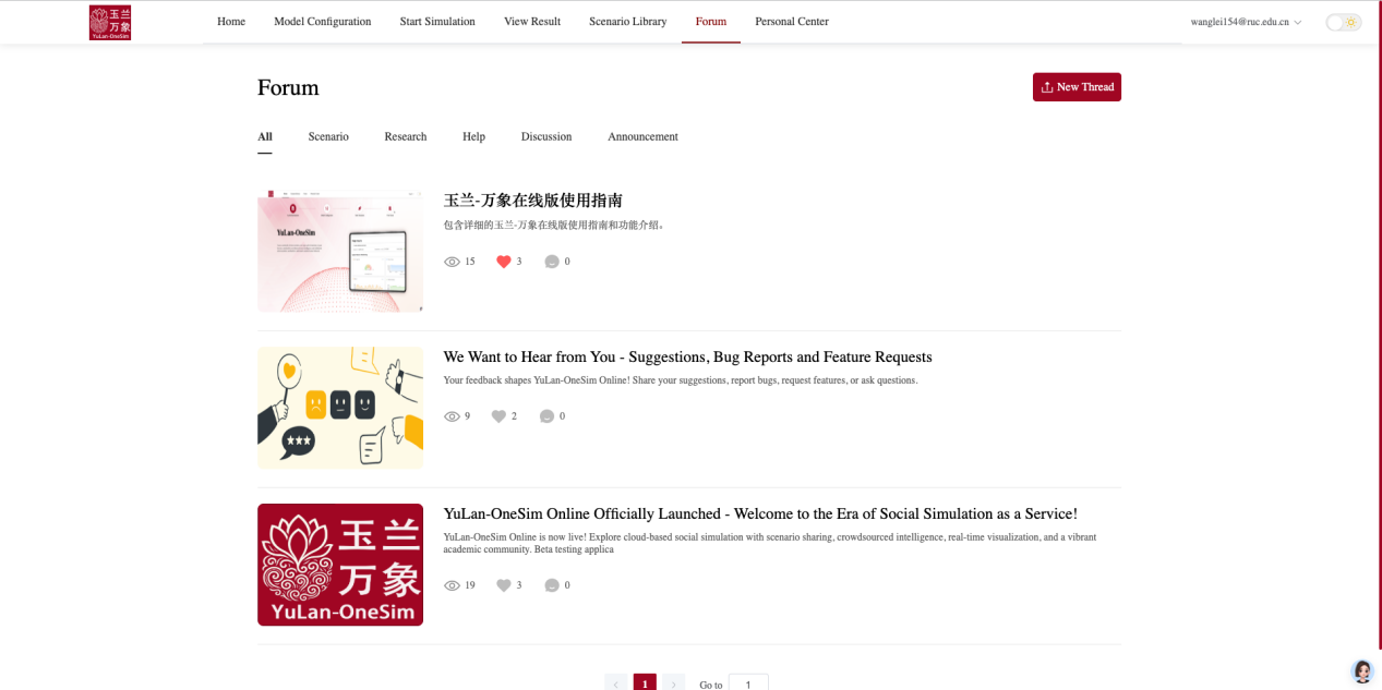 玉兰-万象在线版不是简单的将玉兰-万象移到云端,更是一个学术交流与创新协作空间。平台为科研人员、开发者与管理者提供多层次互动社区,支持项目展示、论文分享、代码开源与模型讨论。用户可以在社区中发起专题研讨、发布数据资源、组织模拟挑战赛,实现跨学科、跨机构的知识共创。通过这一机制,平台促进社会模拟研究的开放化与国际化,构建智能科研的协同创新网络。